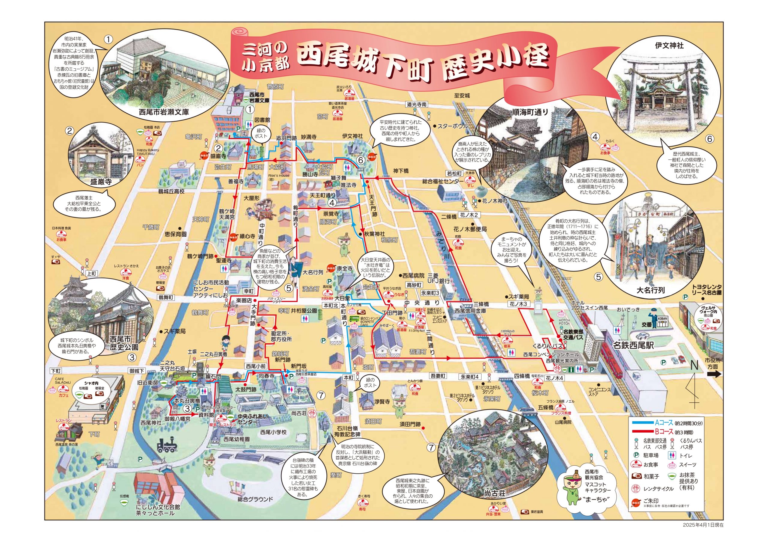 6万石の城下町として知られる西尾の城下町散策マップ。